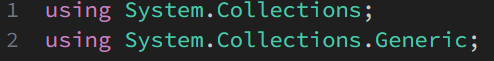 1~2번 줄의 System.Collections와 System.Collections.Generic은 데이터를 저장하는 형을 제공한다고 하네요(int나 char같은 자료형? 인것 같습니다만 아직은 정확히 모르겠네요;)