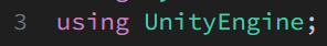 3번줄의 unityEngine은 유니티가 동작하는 데 필요한 기능을 제공한하고 하네요