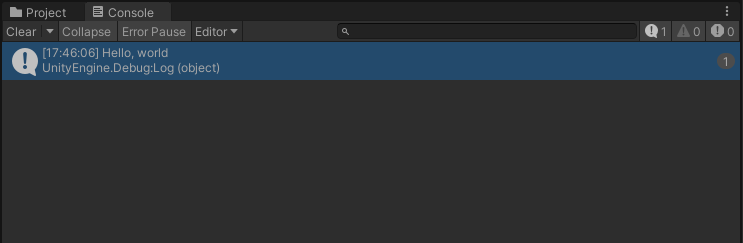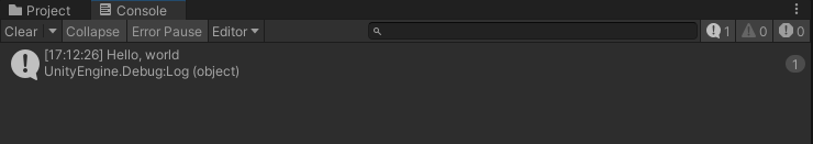 아무 오류 없이 Console창에 Hello, world가 출력된 걸 확인할 수 있었습니다